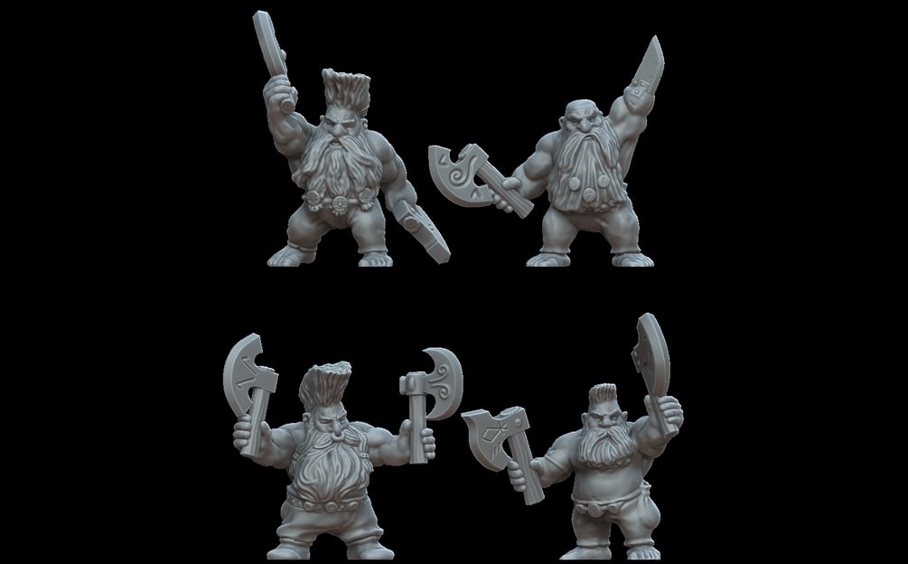 8 highly detailed dwarf miniatures in digital STL format